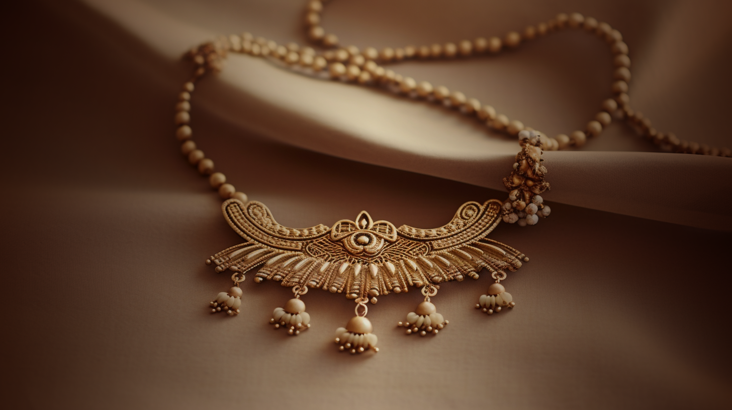 Gold Plated Engraved Design with exclusive pearl piroi Light weight Size 3.5 inches approx Keep away from direct contact of...