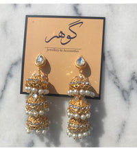 Antique Afghani style lightweight jhumkay with Gold Plating & a touch of pearls Length: 4.5 inches approx Light weight brass...