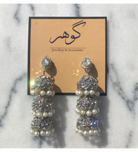 Heart Shaped Statement Jhumkay with Pearl hangings Silver Plated Size 3 inches approx Keep away from direct contact of water...