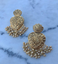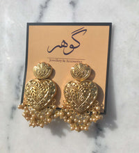 Heart Shaped Statement Jhumkay with gold moti hangings