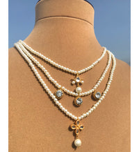 Pearl Necklace with a Kundun Motif & touch of Red & Green beads Brass base with Gold Plating