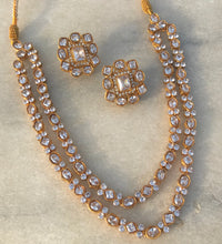 Kundun style maala set embedded with real zircon & a touch of emerald green stones
