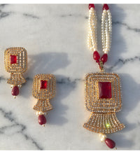 Beautiful locket set made with champagne zircon stones and semi precious ruby
