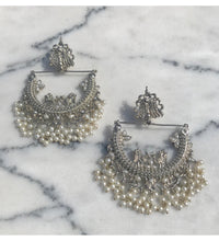 Heart Shaped Statement Jhumkay with Pearl hangings Silver Plated Size 3 inches approx Keep away from direct contact of water...