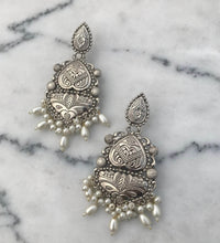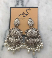 Heart Shaped Statement Jhumkay with Pearl hangings Silver Plated Size 3 inches approx Keep away from direct contact of water...