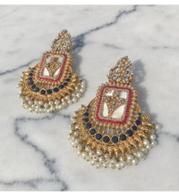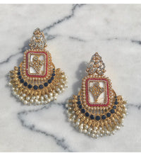 Signature RANI jhumkay with mother of pearl center stone & delicate zircon setting along with semi precious blue sapphire