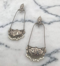 Trendy peacock style silver jhumkay with a touch of pearls is a must have piece